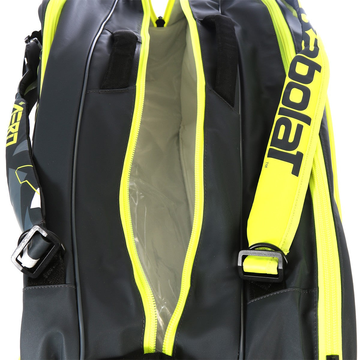 Questa borsa da tennis Babolat Pure Aero è dotata di 3 scomparti e può contenere fino a 12 racchette da tennis. Dispone inoltre di 2 scomparti isotermici che mantengono fresche le bevande e gli effetti personali e proteggono l'attrezzatura dagli sbalzi di temperatura esterni. Uno scomparto ventilato sul fondo della borsa consente di riporre le scarpe.