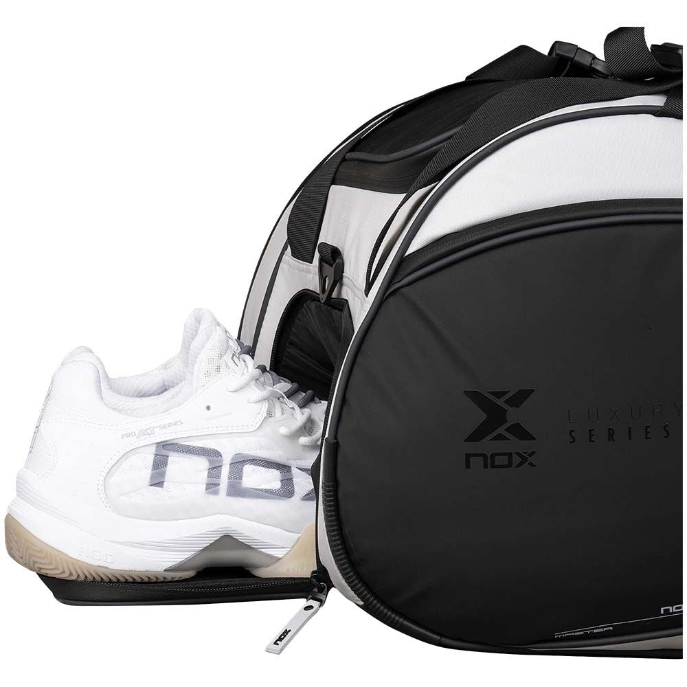 La borsa da padel Nox Master Series offre un'ampia capacità di stoccaggio per tutta la tua attrezzatura. Puoi trasportare fino a 3 racchette in uno scomparto termico dedicato, che le proteggerà efficacemente dagli sbalzi di temperatura. Colori bianco e nero.